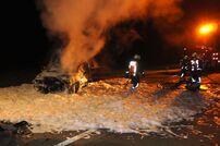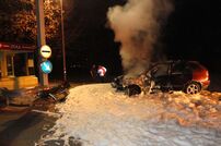 Infolge des Aufpralls fing der PKW Feuer. Ein nachfolgender Autofahrer versuchte noch den Brand mit einem Feuerlöscher zu bekämpfen, konnte diesen aber nicht vollständig löschen.