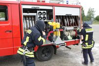 Am Samstagmorgen startete der zweite Tag mit einem ausgewogenen Frühstück. Ab 9.30 Uhr stand der zweite Probeteil mit Löschangriff auf dem Programm. Nach dem verdienten Mittagessen wurden die Schläuche gereinigt, das Fahrzeug gerichtet, die Elektrogeräte nach DIN VDE 0702 geprüft, Wegweiser für das Zeltlager bemalt und diverse kleinere Reparaturen durchgeführt. Am Abend wurde im dritten Probeteil, dem Löschangriff, noch der letzte Feinschliff verpasst. Gemeinsames Grillen am Lagerfeuer rundeten den Tag perfekt ab.