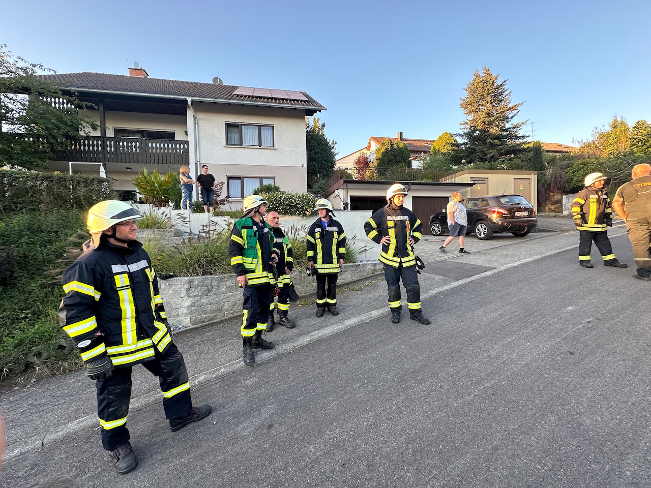 Beim Eintreffen des LF 16/12 aus Tengen war die Lage bereits weitgehend geklärt. Der Gruppenführer stellte daraufhin einen Sicherheitstrupp und übernahm die Verkehrsabsicherung. Das Gebäude wurde in der Zwischenzeit mit Unterstützung einer Wärmebildkamera vollständig nach Personen abgesucht. Glücklicherweise wurde niemand im Gebäude gefunden.