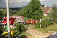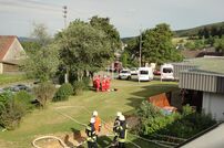 Beim Eintreffen des ELW-1 mit Einsatzleiter Claus Preter war die Abteilung Wiechs a.R. bereits vor Ort. Gruppenführer Stefan Winter übernahm sofort die Erkundung und ließ zeitgleich die Wasserversorgung sowie ein C-Rohr aufbauen.