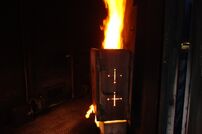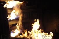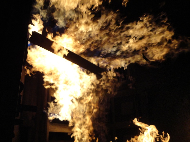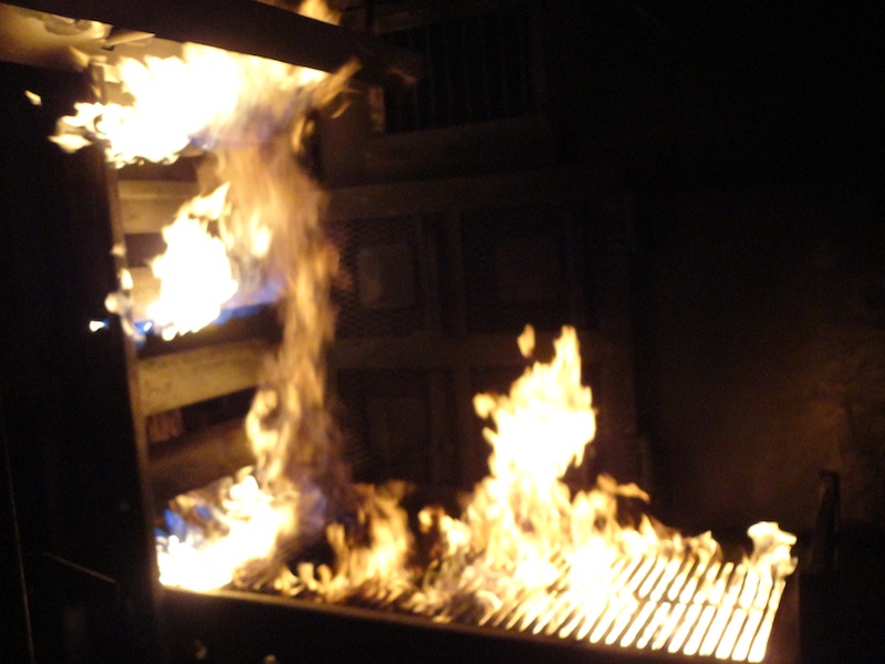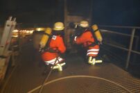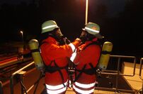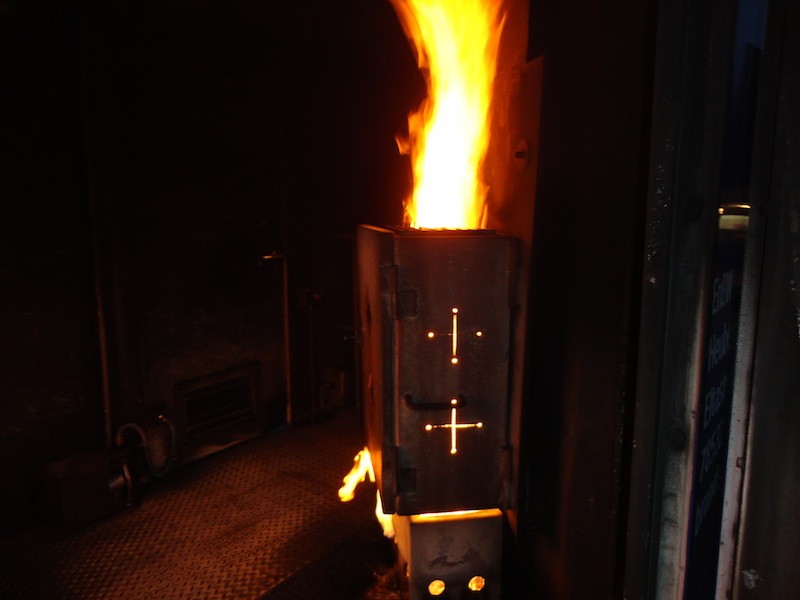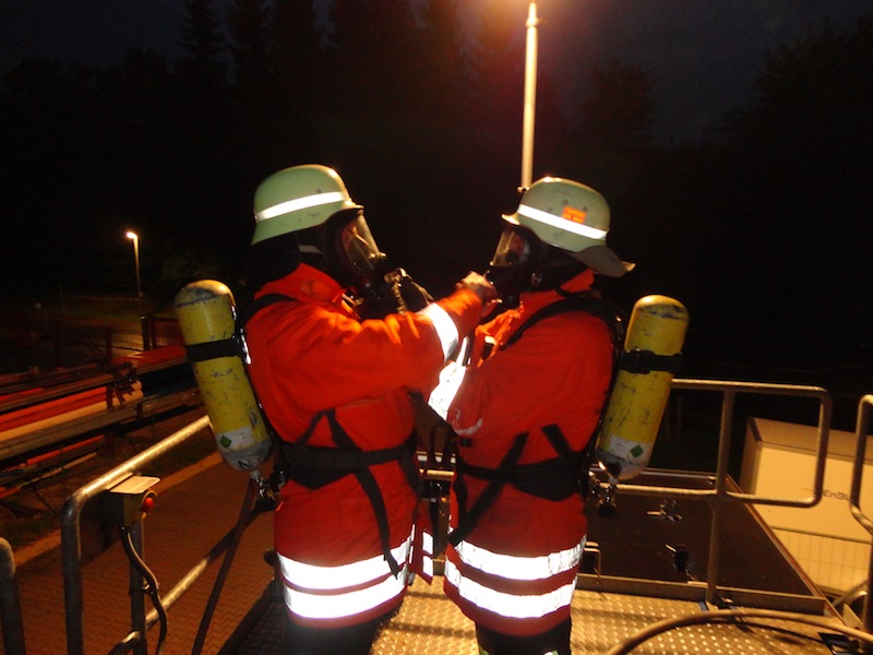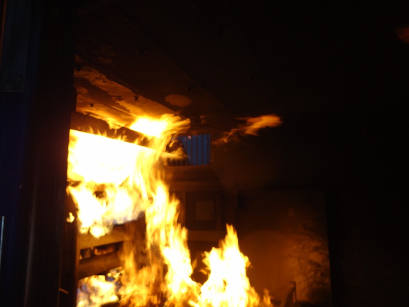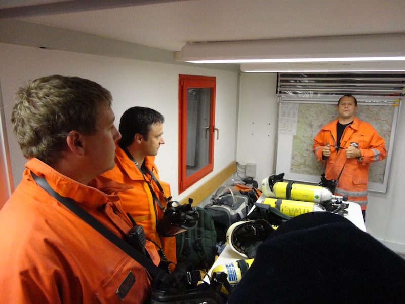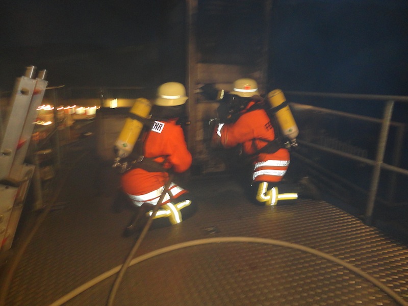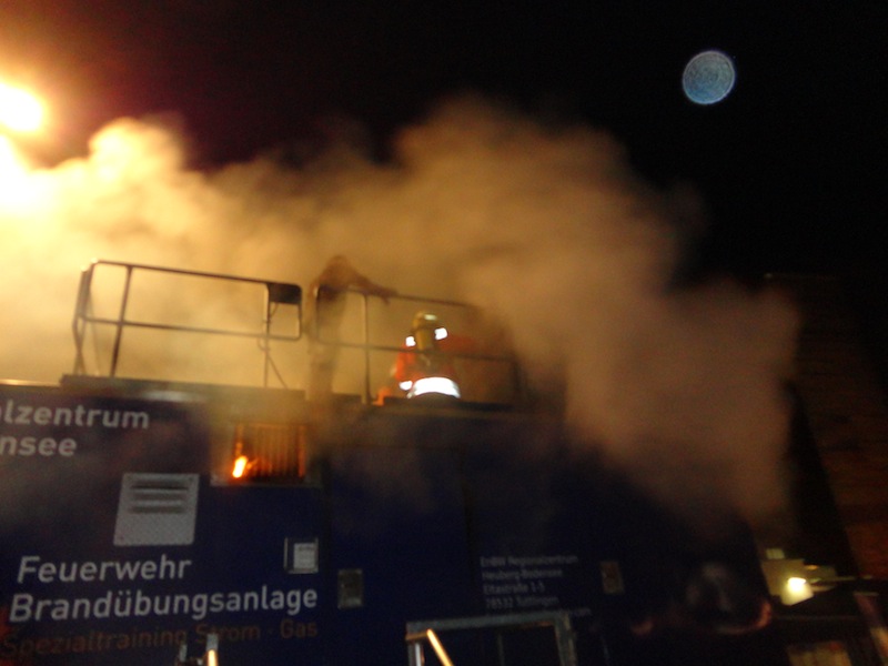 Der Übungsraum war über eine Wendeltreppe vom Dach aus erreichbar. Vor dem Einstieg wurde die Tür auf Wärme überprüft. Im Übungscontainer konnten sich die Feuerwehrleute mit Hitze, Dunkelheit, Enge und den Gefahren beim Atemschutzeinsatz vertraut machen. Mit Hilfe der eingebauten Brandstellen wurden unterschiedliche Einsatzlagen simuliert. Auch die Simulation so genannter „Flash-Overs“ (große Rachgasdurchzündungen mit Temperaturen von bis zu 1200°C) war in dieser Anlage möglich.
