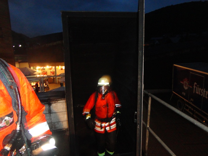 Beim Sommerfest der Feuerwehr Geisingen waren unsere Atemschutzgeräteträger am Samstag und Sonntag im mobilen Brandübungscontainer. Die Übung wurde für die Besucher über Kameras im Container nach außen übertragen.