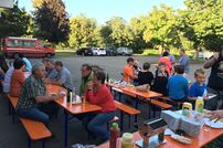 Am Freitagabend trafen sich die daheimgebliebenen Feuerwehrangehörigen zum Sommerhock vor dem Feuerwehrhaus.