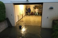 Durch die starken Niederschläge am Sonntagabend kam es im Bereich der Hegaustraße zur Auslastung des Abwasserkanals. Das Wasser drückte dann rückwärts in ein Gebäude, so dass die Garage und ein Kellerraum einige Zentimeter unter Wasser standen. Mit einer Tauchpumpe und dem Wassersauger konnte die Überschwemmung entfernt werden.