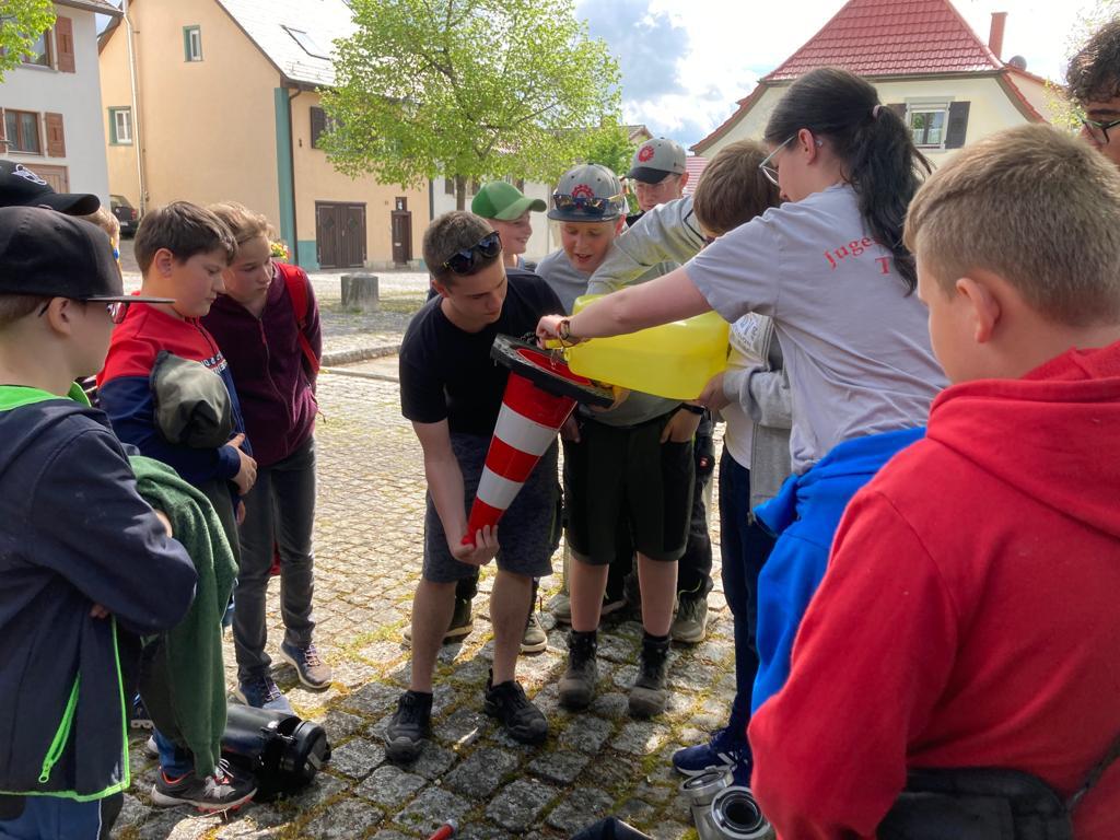 Verteilt durch die Altstadt und Feldwege rund um Aach hatte die Jugendfeuerwehr Aach tolle und abwechslungsreiche Spiele vorbereitet sowie einen spannenden Fragebogen zur Stadt Aach erstellt, der den gesamten Weg über gelöst werden musste. Der Jugendfeuerwehr hat es sehr viel Spaß gemacht.