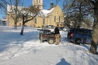 Bei wunderschönem, eisigem Winterwetter gratulierte Kommandant Wolfgang Veit den Eltern Jochen und Stefanie Reithinger.