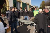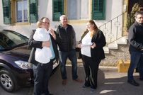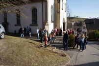 Nach dem Taufgottesdienst von Luisa Huber in der Pfarrkirche St. Martin in Büßlingen wurden mit der Böllerkanone drei Schüsse abgegeben.