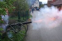 Mit der Böllerkanone wurden nach der Taufe von Maximilian und Philipp Meier in der St. Georgskapelle traditionell drei Kanonenschüsse abgeschossen.