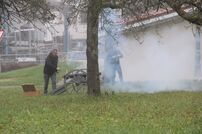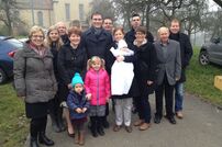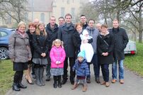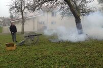 Von den der Kameraden Feuerwehr Tengen wurde der neue Erdenbürger Raphael Schautzgy nach der Tauffeier in der St. Laurentius Kirche in Tengen mit drei Böllerschüssen begrüßt.