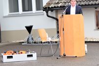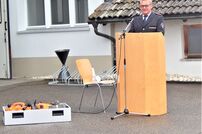Aufgrund der Corona-Verordnung war die Teilnehmerzahl bei der Übergabe begrenzt. Bürgermeister Marin Schreier begrüßte die anwesenden Gemeinderäte, Kreisbrandmeister Andreas Egger, Stihl Werksleiter Holger Vollmer, Gesamtkommandant Wolfgang Veit, Abteilungskommandant Herbert Stihl und die aktiven Kameraden der Abteilung Wiechs a.R.