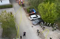Nach der Alarm- und Ausrückeordnung (AAO) rückten insgesamt acht Fahrzeuge der Feuerwehr aus, um die angenommene Lage zu bewältigen. Vier Trupps unter Atemschutz suchten im Keller nach den vermissten Personen. Eine besondere Herausforderung stellte dabei die enge Sackgasse dar, in der sich die Kita befindet, sowie die unzureichende Wasserversorgung über das Hydrantennetz. Daher wurde zusätzlich Wasser aus der parallel zur Straße verlaufenden Biber entnommen, um ausreichend Löschwasser bereitzustellen.