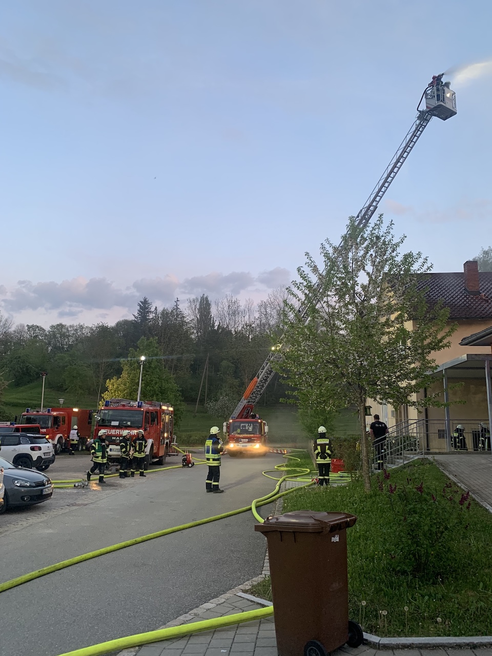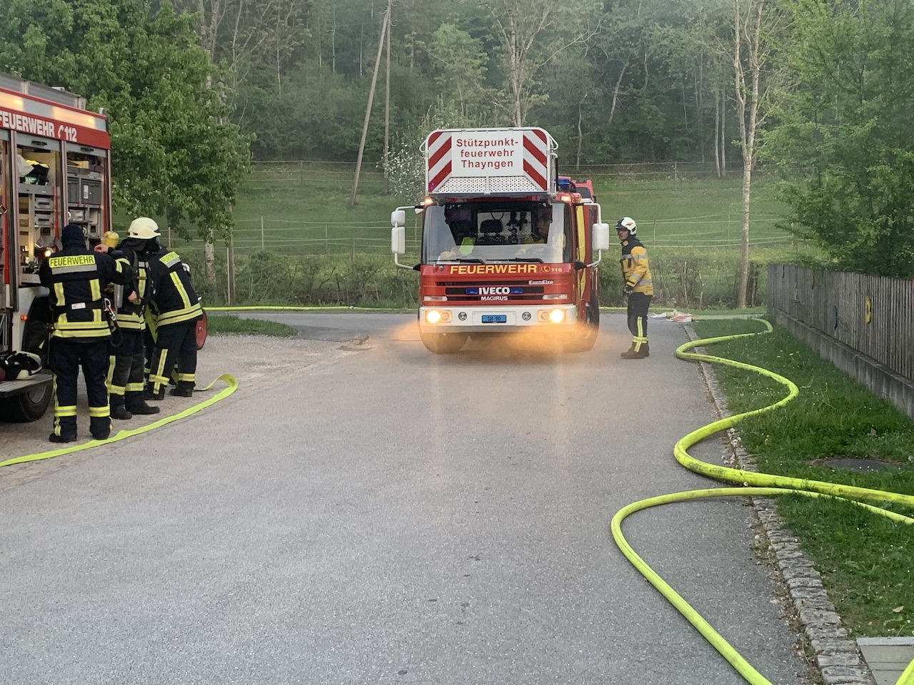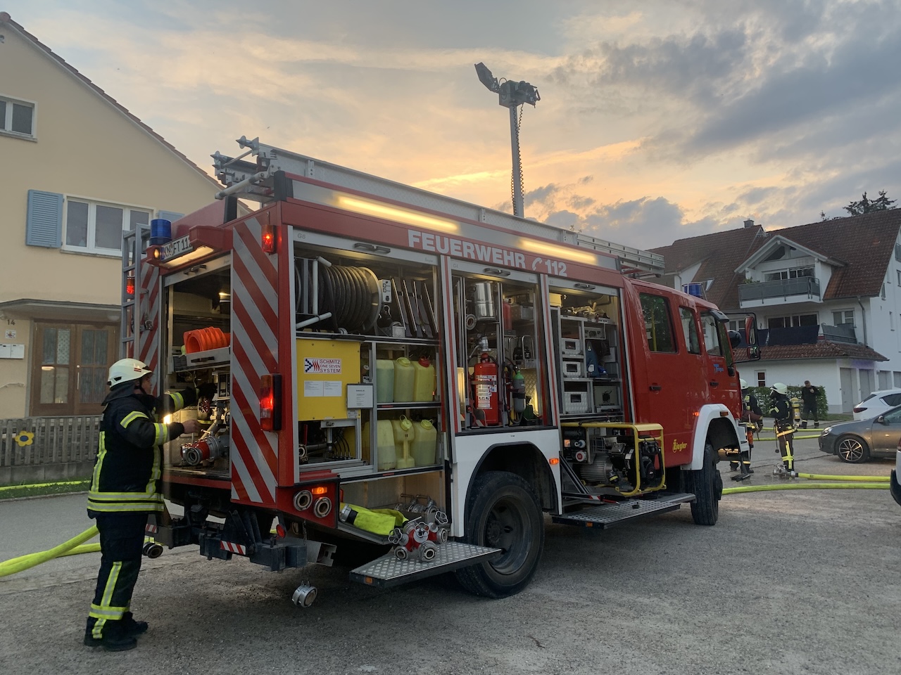 Am vergangenen Montag fand eine spannende und lehrreiche Einsatzübung der Ausrückebereiche Büßlingen-Beuren und Tengen statt. Zur Überraschung aller Beteiligten gab es zudem spontane Unterstützung durch die Drehleiter DAGO 08 der Feuerwehr Thayngen. Ziel der Übung war es, die Zusammenarbeit aller ausrückenden Einsatzkräfte bei einem Brandereignis der Stufe B3 in einem Gebäude zu trainieren.