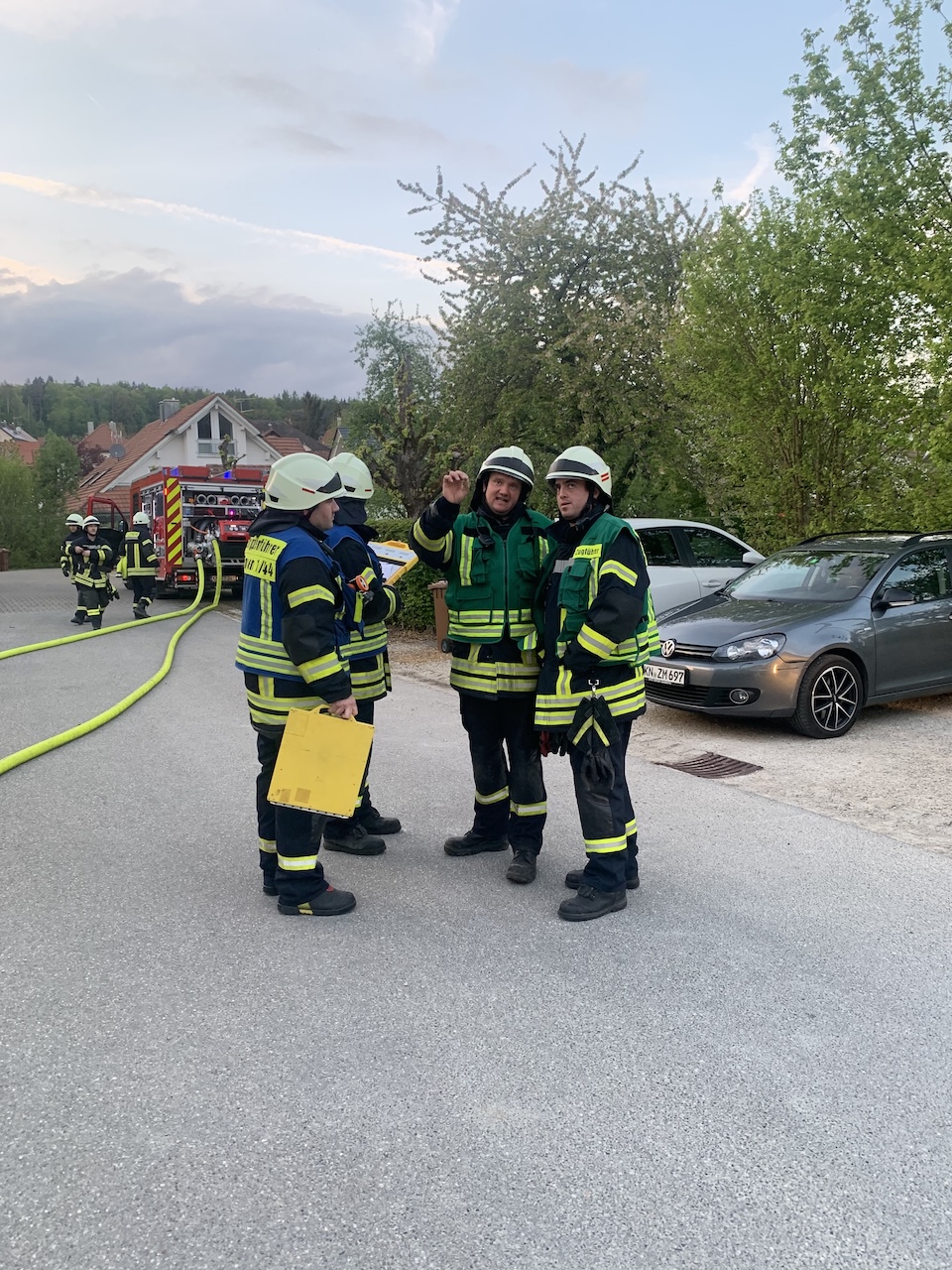 In der anschließenden Übungsbesprechung zeigte sich Kommandant Uwe Veit sehr zufrieden mit dem Verlauf: Die Übung sei sehr gut verlaufen, die Abläufe funktionierten reibungslos – ein Beweis für die gute Zusammenarbeit und die professionelle Ausbildung der Feuerwehrkräfte. Auch Einsatzleiter und stellvertretender Abteilungskommandant aus Büßlingen, Michael Ritzi, zog ein positives Fazit. Kleinere Punkte, die teilweise der Übungssituation geschuldet waren, wurden direkt angesprochen und geklärt.