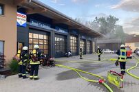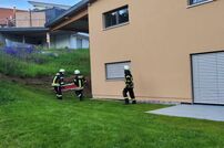 Durch Schweißarbeiten an einem Auto in der Werkstatt entstand ein Brand, welcher den ersten Fluchtweg der Personen in den Aufenthaltsräumen im 1. Obergeschoss absperrte. Als zweiter Rettungsweg wurden Rettungsgeräte (tragbare Leitern) der Feuerwehr in Stellung gebracht.