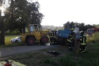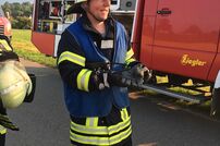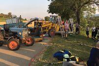 Bei der Übungsannahme kam es auf einem Landwirtschaftsweg zu einem Verkehrsunfall mit einem Traktor, der mit gefährlichen Stoffen beladen war. In den beteiligten Unfallfahrzeugen wurden mehrere Personen eingeklemmt.