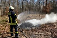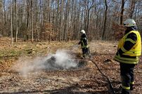 Die unbeaufsichtigte und überwiegend abgebrannte Feuerstelle wurde mit dem Schnellangriff des LF 8/6 abgelöscht.