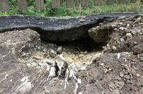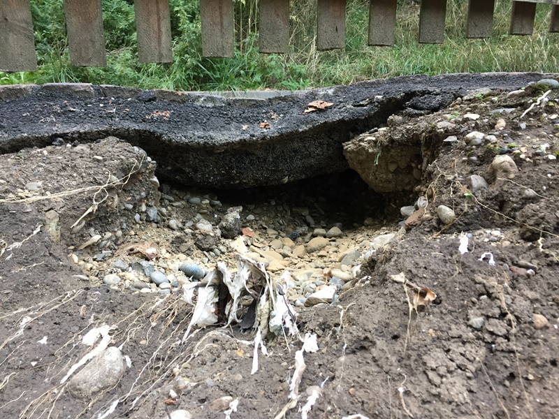 Unterspülte Fahrbahn