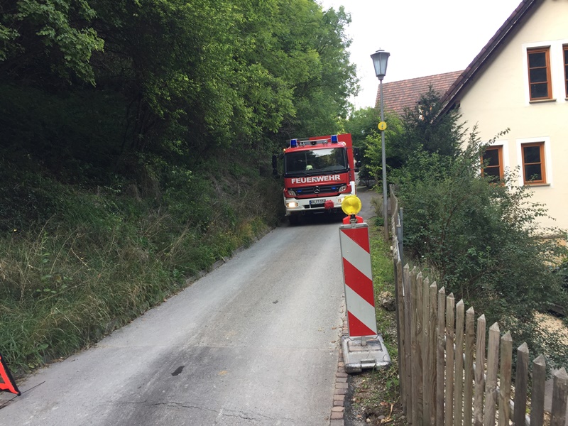 Aufgrund einer Straßenunterspülung wurde am 25.08.2017 der Brandmeister vom Dienst über die Schleife 502 zur Blumenfelder Bibermühle alarmiert.