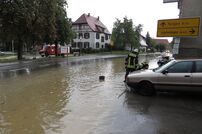 Nach heftigen Niederschlägen war die Hauptstraße in Watterdingen ca. 20cm überflutet.