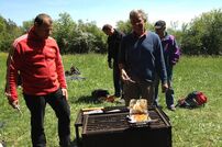 Nach einem kurzen Zwischenstopp im Clubheim des Fortuna Tengen führte uns der Weg zum Vatertagsfest des Musikvereins Watterdingen-Weil bei der Postweghütte. Mit herrlicher Aussicht auf Hegau, Bodensee und Alpen wurde am alten Postweg das zünftige Rucksackvesper ausgepackt und die wohlverdiente Rast eingelegt. Frisch gestärkt ging es über Leipferdingen wieder zurück in die Heimat.