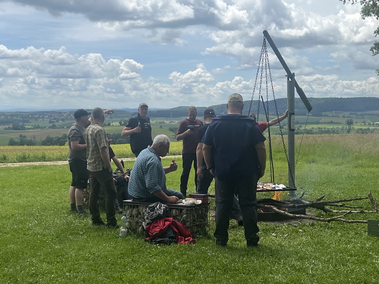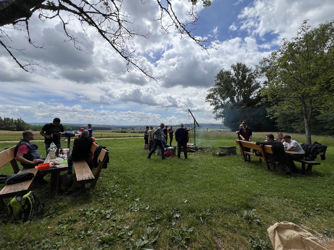 Anschließend wanderten wir weiter zur Brodlosen Hütte in Beuren. Dort bereiteten wir unser Rucksackvesper auf dem Grill zu und genossen die herrliche Aussicht über den Hegau.