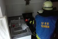 Nach der Erkundung durch Einsatzleiter Horst Leichenauer und der Kontrolle des Kamins mit der Wärmebildkamera durch den Atemschutztrupp konnte rasch Entwarnung gegeben werden. Vermutlich wurde durch die aktuelle Wetterlage der Rauch beim Anfeuern aus dem Kamin in die betroffene Wohnung gedrückt. Mittels Lüfter wurden die verrauchten Räume rauchfrei gemacht.
