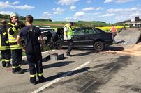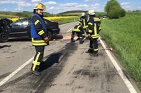Aus bislang ungeklärter Ursache kam ein mit drei Personen besetzter PKW auf die Gegenfahrbahn und prallte dort mit einem entgegenkommenden Fahrzeug zusammen.