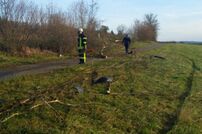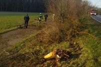 Von der Feuerwehr Tengen wurden auslaufende Betriebsstoffe aufgenommen und der Baum, welcher über dem parallel laufenden Landwirtschaftsweg lag, beseitigt.