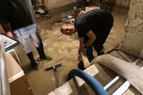 Nach der Verständigung des städtischen Wassermeisters wurde mit einer Tauchpumpe und einem Wassersauger das Wasser aus dem Keller gepumpt.