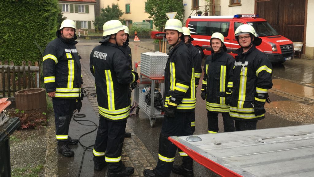 Nach dem Eintreffen im Feuerwehrhaus wurde gemeldet, dass in der Beurener Bibertalstraße Wasser in den Keller eindringt. Mit einem Wassersauger wurde das Wasser aufgenommen und nach draußen befördert.