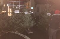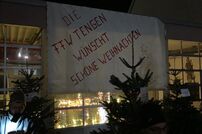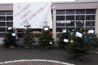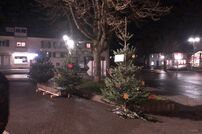 Mit der Aufschrift „Tengen feiert Weihnachten mit echten Christbäumen” stellten wir zehn mit Kugeln, Lichterkette u. Weihnachtssternen geschmückte Nordmanntannen auf.