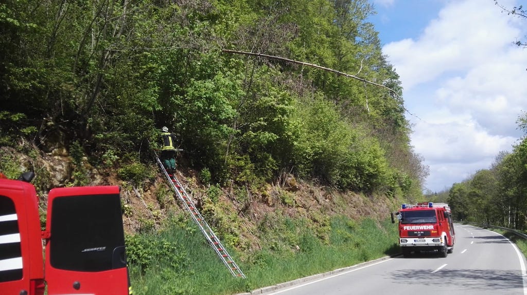 Am 12.05.19 alarmierte uns die Leitstelle über die Einsatzschleife 502. Bei der Übernahme des Einsatzes hieß es Baum hängt über Kreisstraße 6132 von Tengen Richtung Uttenhofen.