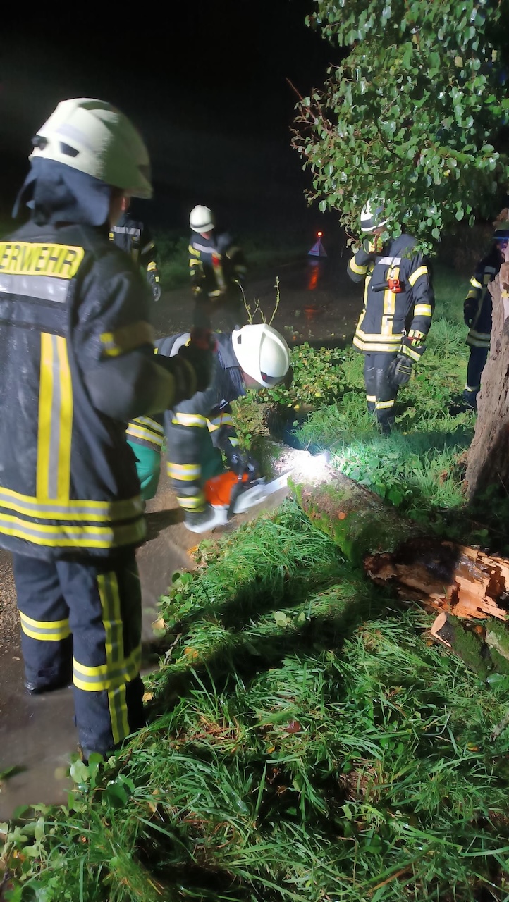 Die Feuerwehr Tengen, Ausrückebereich Büßlingen-Beuren, wurde daraufhin mit der Kleineinsatzgruppe über digitale Meldeempfänger mit dem Stichwort „H1 – Baum über Fahrbahn“ alarmiert.