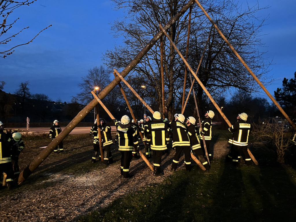 Der Bürgermeisterbaum wurde unter der Regie von Armin Zimmermann von allen Kamerad*innen der Ausrückebereiche Büßlingen, Tengen, Watterdingen und Wiechs gestellt. Zu Ehren unseres neuen Bürgermeisters wurden drei Böllerschüsse abgefeuert.